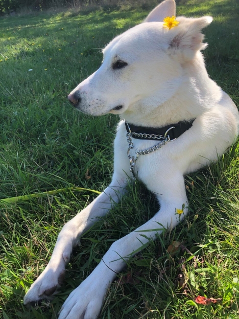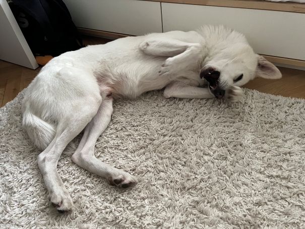 * Bianco přišel o část ocasu jako malinké štěně následkem úrazu. Ocas má proto kratší bez zatočení.