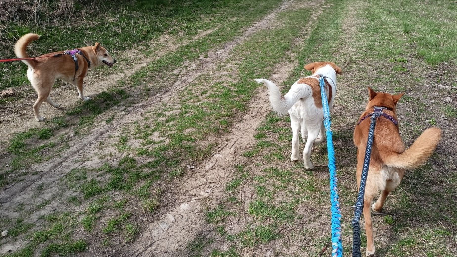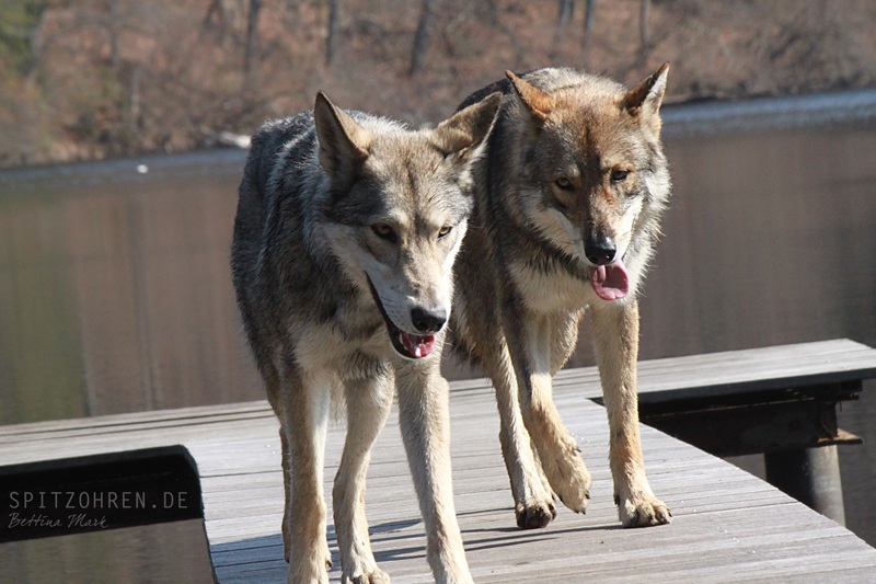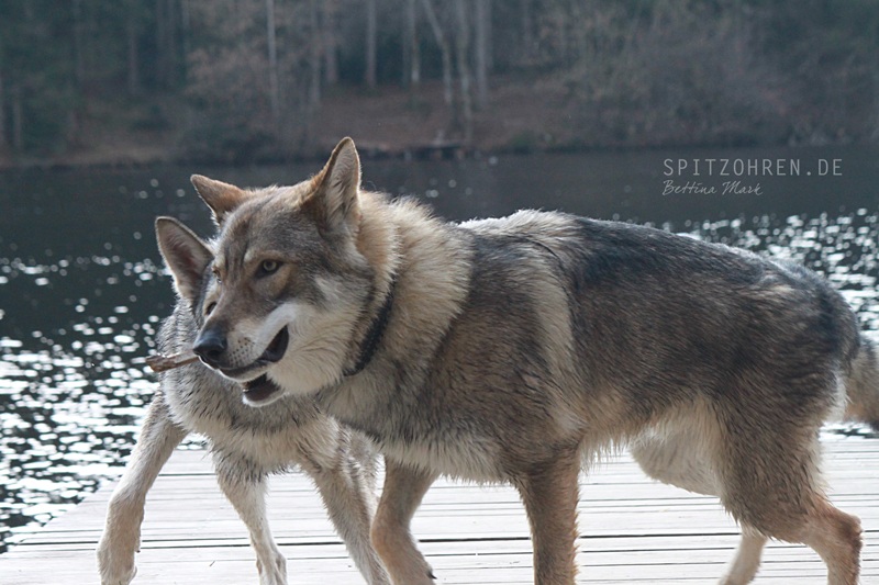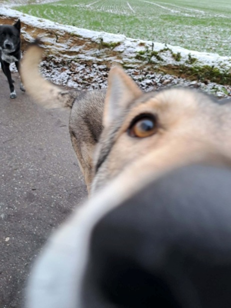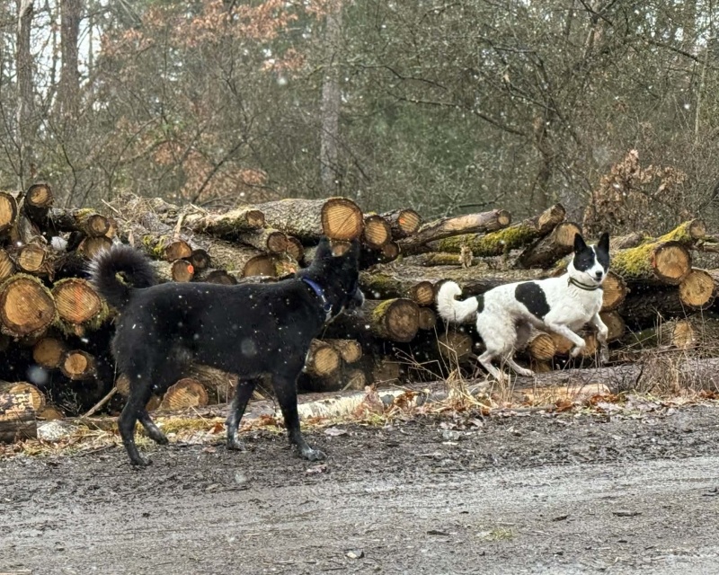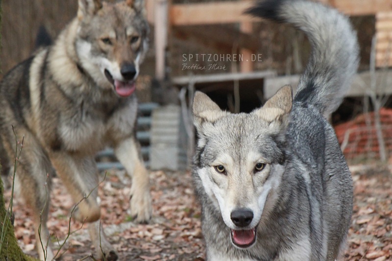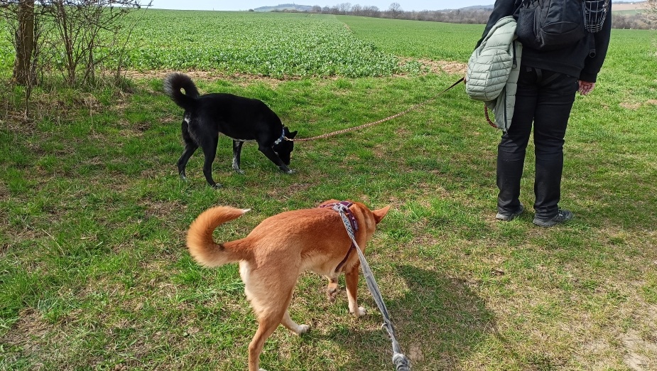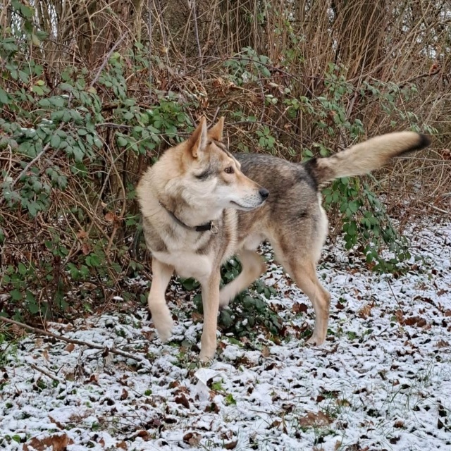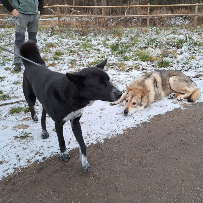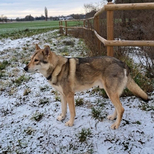 Na začátku roku jsme si jeli do Německa pro kanaánce Aruwiho, který tam žil se svojí majitelkou a saarloosím parťákem (z jiné chovatelské stanice). Majitelka se jej rozhodla vzdát po velké životní změně. Při této příležitosti jsme se setkali také se saarloosem Enzem z našeho úplně prvního vrhu, jehož majitelé byli tak hodní, že nám Aruwiho o kus cesty přiblížili. Byl to obrovsky emotivní den pro nás všechny. Majitelé Enza, kteří Aruwiho znají od malička, nám říkali, že kdyby jen trochu mohli, tak si Aruwiho nechají oni, protože je to skvělý pes a opravdu miláček. Aruwi i Enzo jsou oba naprosto parádní a bylo krásné se s nimi zase po několika letech vidět, i když bychom samozřejmě upřednostnili setkání za docela jiných okolností.