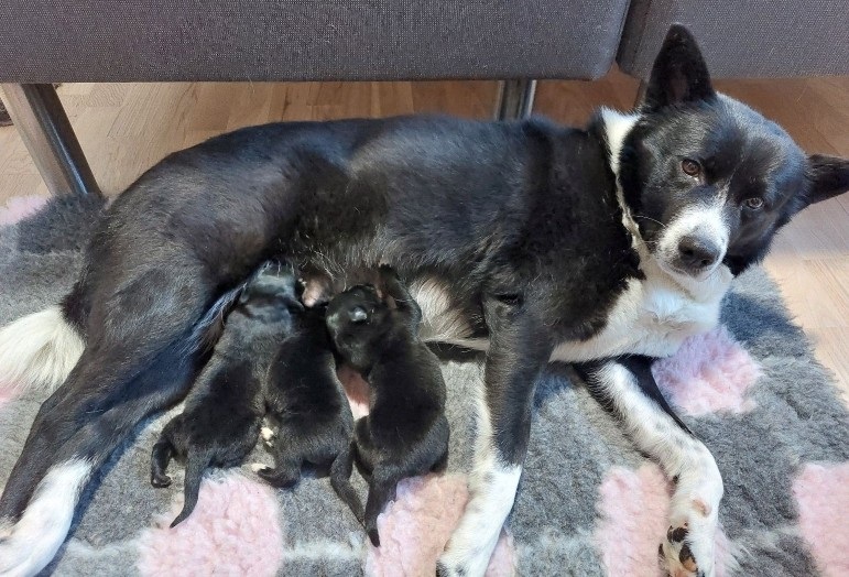 Ahati z Lotyšska se stal poprvé tátou! Ve Finsku se mu narodila krásná zdravá štěňátka v chovatelské stanici Katafaronja. Po 16-ti leté chovatelské pauze tam přišli na svět dvě fenky a jeden pejsek – všichni v černém zbarvení po mamince. Štěňátka jsou již zamluvená.