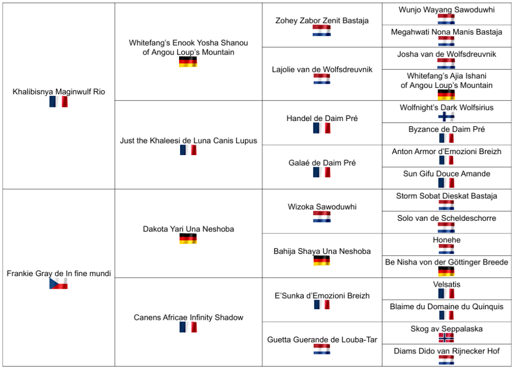 - Very good (šampionát NVSWH), Excellent, BOJ (šampionát AVLS)